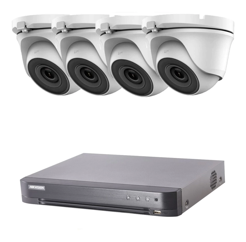 Kit de videovigilancia Full HD que incluye: » DVR de 4 canales Full HD Hikvision » 4 cámaras infrarrojas metálcias Full HD Hikvision con tornillos y tarugos » 4 fuentes de alimentación 12v 1a para cámaras » 4 pares de conectores balunes y fichas plug » Fuente alimentación para DVR » Cartel disuasivo Opcional: disco rígido para almacenar videos (consulte) Cámaras: Resolución 2MP / HD 1080pp.