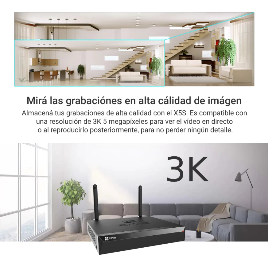 NVR INALAMBRICO EZVIZ X5S WIFI 4CH CAMARA 5MP HD + DISCO 1TB RIGIDO PURPLE o SKYHAWK según stock