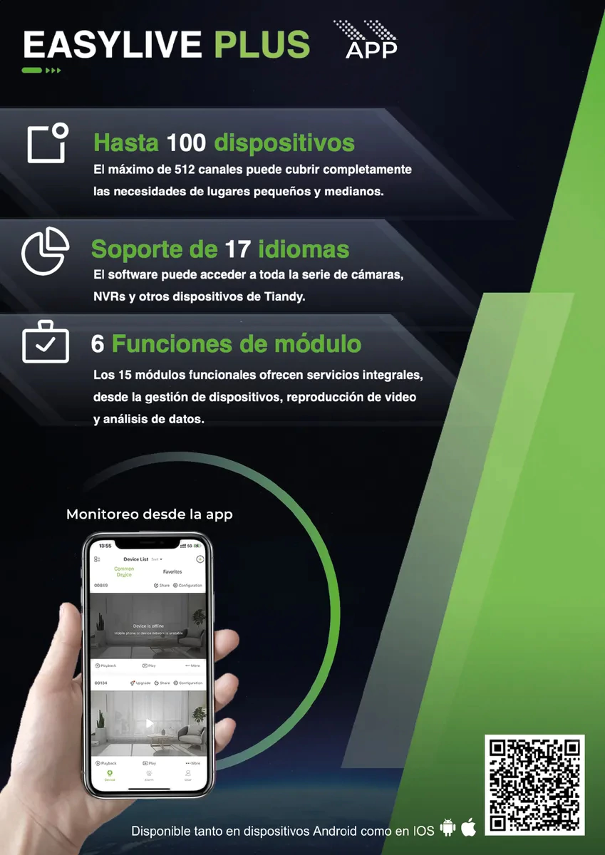 Conexión IP: Configuración simple y rápida, permitiendo un monitoreo remoto y fácil acceso a las grabaciones desde cualquier dispositivo conectado a Internet.